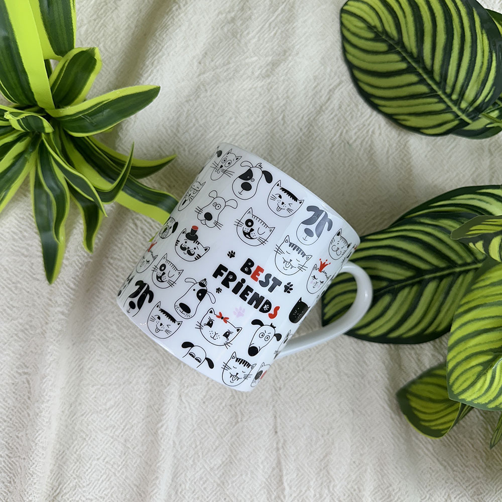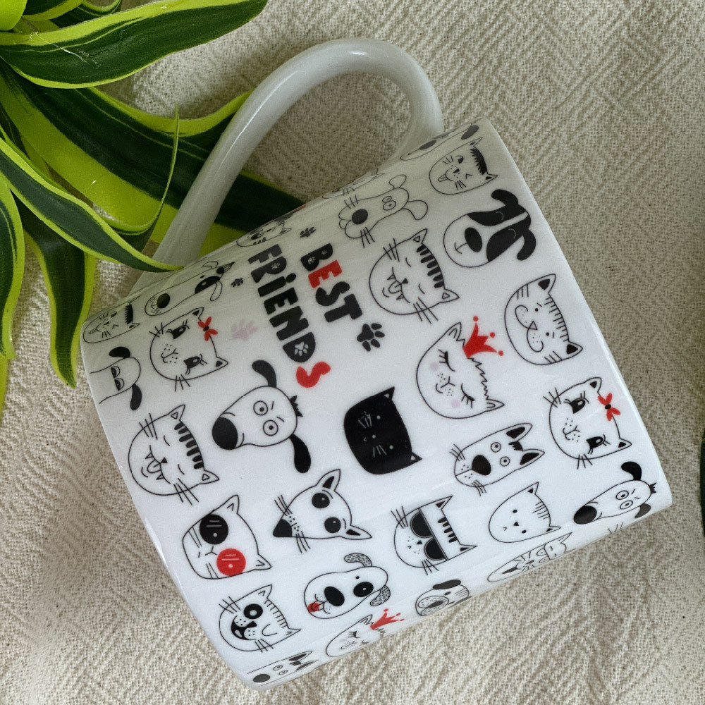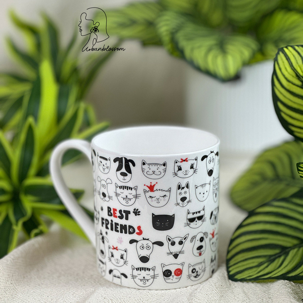 這款「Best Friends」馬克杯以俏皮可愛的狗狗與貓咪插畫為主題,黑白線條搭配點綴的紅色小細節,充滿童趣與溫暖感。無論是日常喝咖啡、茶,還是當作小禮物,都能帶來療癒的好心情。